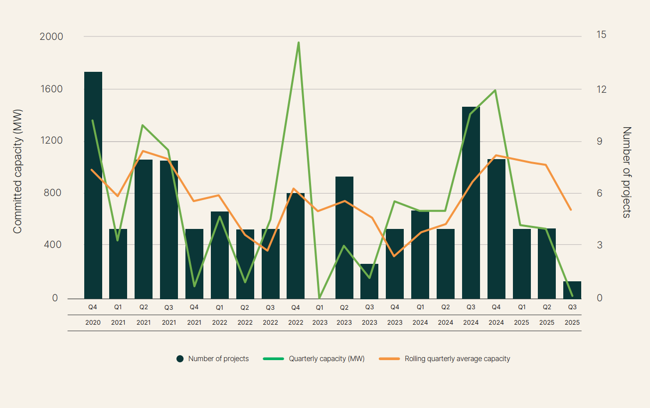 Financially committed generation projects and capacity, quarterly