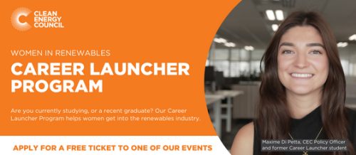Maxime said, “The Career Launcher Program was my entry to the industry; I got first-hand experience and support through a mentor on the day. Once I graduated, I reconnected with my sponsoring organisation, Clean Energy Council, and was able to kickstart my career in renewable energy with them.”“While my studies introduced me to renewable energy concepts, the Career Launcher Program allowed me to experience the industry, current projects, and important players firsthand.”“The Career Launcher Program created a real sense of community between the students attending; we were all able to introduce each other to our mentors and discuss how best to navigate the renewable energy industry, particularly as women, together,” she said.In October 2023, Maxime was formally offered a position at the Clean Energy Council, where she has already gained a reputation for being one of the team’s rising stars.While her passion and hard work have been crucial elements to her success in the role, the Career Launcher Program was a key catalyst for her burgeoning career in renewables and beyond.